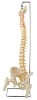 A fully flexible lift size vertebral column consisiting of the occipital plate,cervical,thoracic and lumbar vertebrae,sacrum,coccyx and complete pelvis with articulated, removable femur heads. Addititonal features include representations of the ver tebral arteries,spinal nerve branches and a prolatpsed L3-L4 intervertebral disc. the sacral crest and coccyx are removable to show the sacral section of the spinal cord and associated nerve branches. Mounted on a stand for hanging Size:90x20x20 cm Weight:approx.3000g